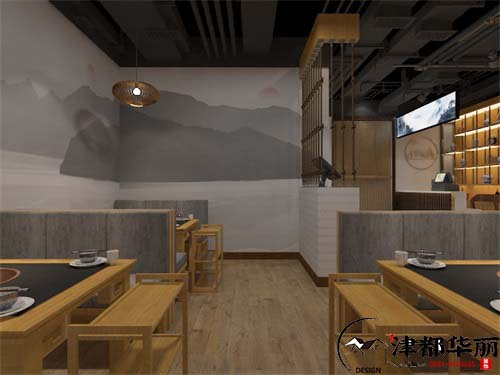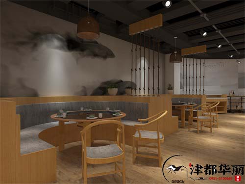 今天分享的是火鍋店裝修設(shè)計案例,本次火鍋店主營粥底火鍋,以健康養(yǎng)生的飲食理念,將粥和火鍋完美的結(jié)合在一起。走進(jìn)火鍋店,首先踏過一間小院。小橋流水,青山翠葉,木色桌椅,大廳的裝修頗有清新氣息,這樣的室內(nèi)設(shè)計可謂別具一格。古典幽雅的火鍋店環(huán)境,古色古香的燈飾和瓷磚,包括墻上置掛的裝飾畫,都與火鍋店整體風(fēng)格渾然一體,自然和諧??臻g更有歲月感的同時不乏現(xiàn)代風(fēng),顧客可以品味歲月蹉跎之風(fēng)味,暖黃色的燈帶通過巧妙的設(shè)計,創(chuàng)造出詩情畫意的景觀,大廳使用隔斷式設(shè)計顯得更加有層次感。包間可以滿足顧客的各種用餐需求,家庭聚會、商務(wù)宴請、公司團(tuán)建等。